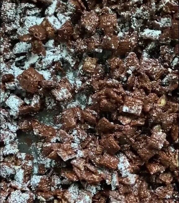 new video loaded: Puppy Chow transcript Back transcript Puppy Chow This delightfully messy Midwestern treat is simple enough for kids to make: Just toss crispy cereal with melted peanut butter…