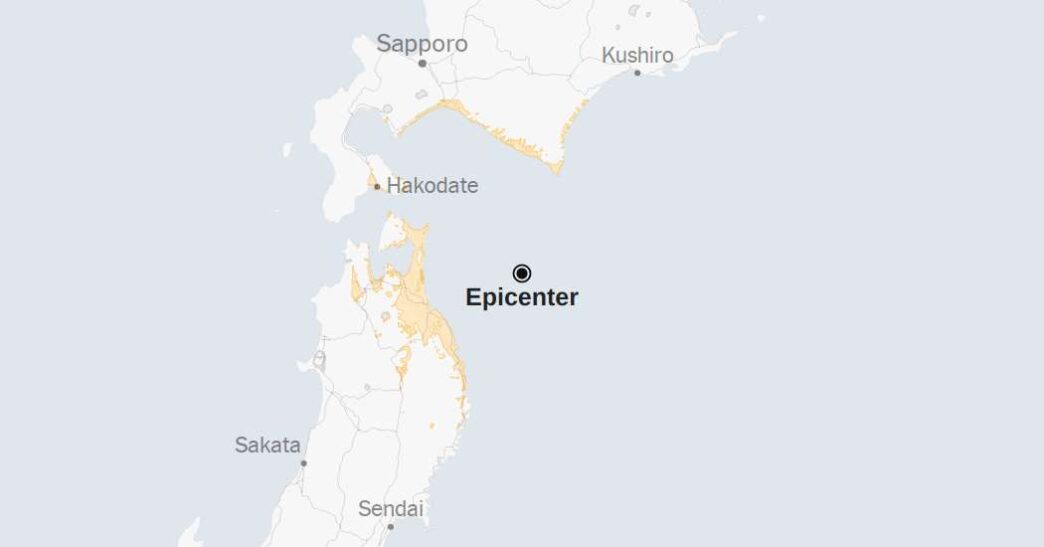 The temblor happened at 9:44 p.m. Eastern about 71 miles northeast of Hachinohe, Japan, data from the agency shows.
